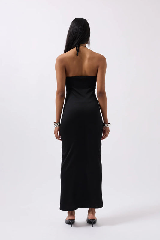 Slit Detail Backless Black Dress