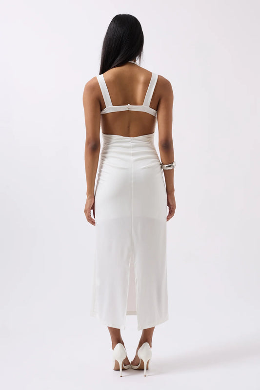 Slit Detail Backless White Dress