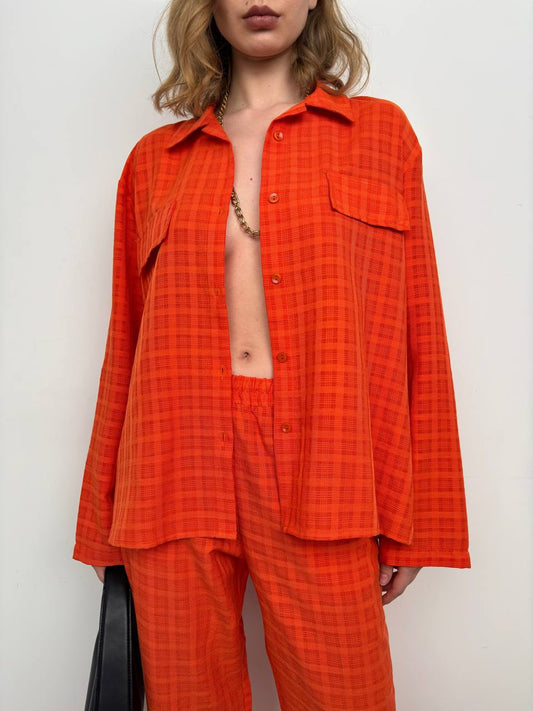 Pocket Orange Shirt Trousers Two Piece Set