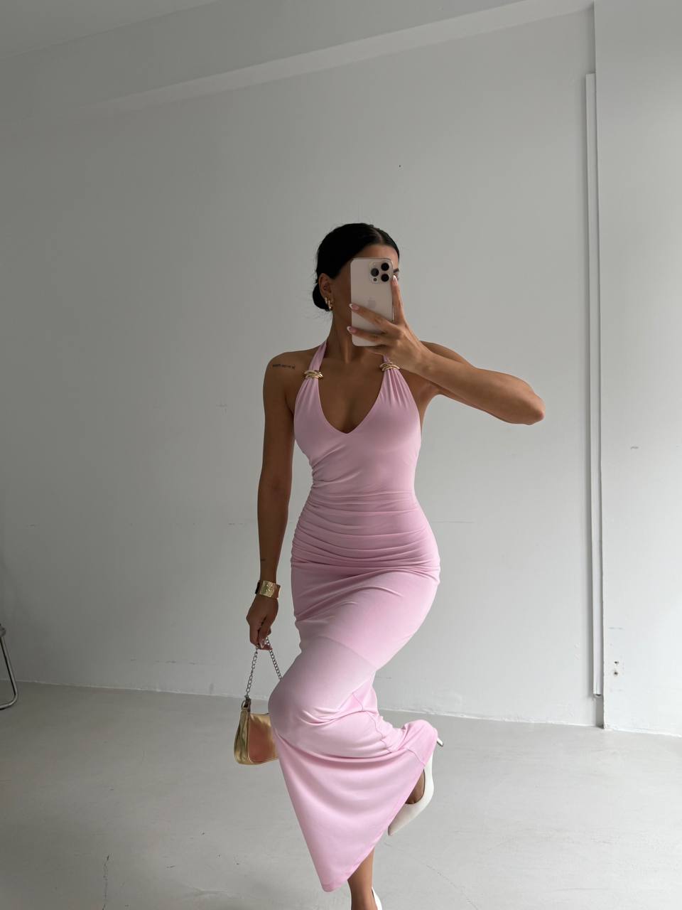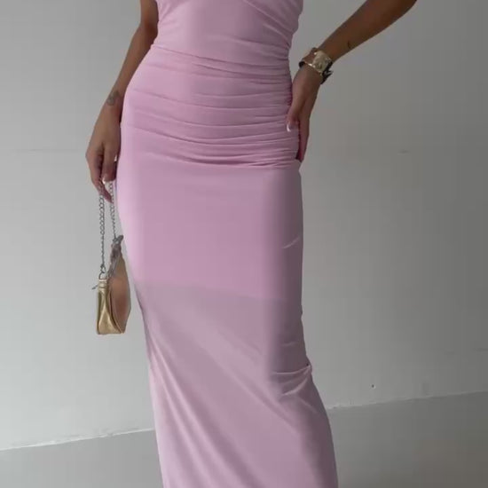 One accessory detail maxi pink dress