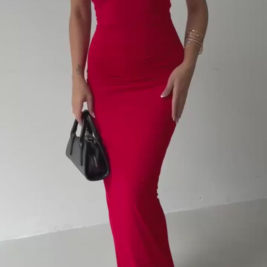 A sleek and sophisticated silhouette that flatters every curve. This body-hugging maxi dress features adjustable straps with gold-tone ring detailing, creating a striking open-back design. The soft, stretch fabric ensures comfort and elegance for any occasion.