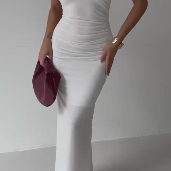 A sleek and sophisticated silhouette that flatters every curve. This body-hugging maxi dress features adjustable straps with gold-tone ring detailing, creating a striking open-back design. The soft, stretch fabric ensures comfort and elegance for any occasion.