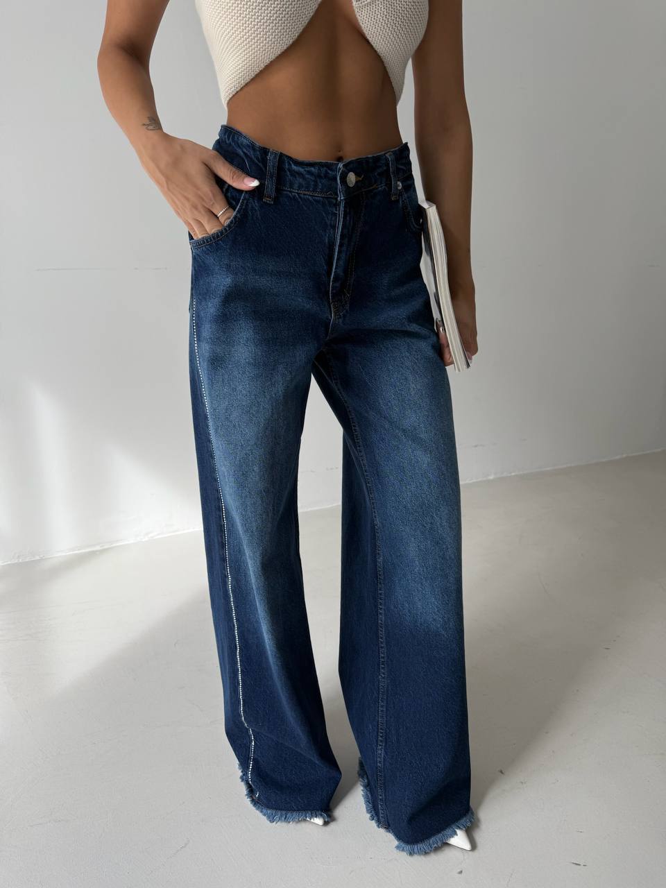 1 x Pair of Rhinestone Side Stripe Blue Jeans