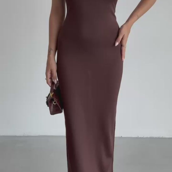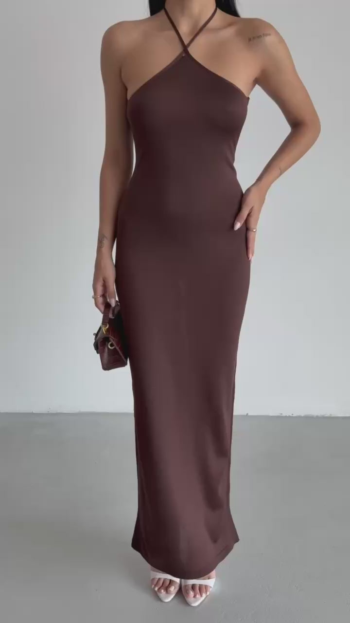 Cross Straps Maxi Brown Dress