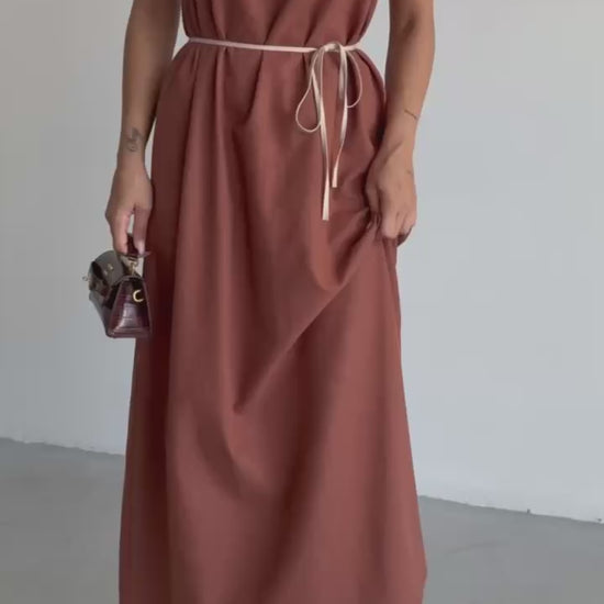 This linen maxi dress is your go to for warm weather comfort Its simple structure and timeless cut create an effortlessly chic look that pairs well with sandals flats or accessories